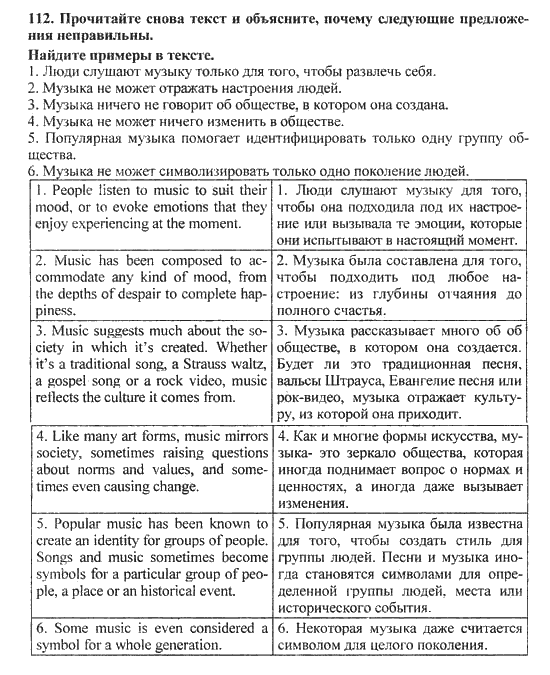 Решения домашних заданий по английскому языку 10 класс Биболетова М. З. 112 упражнение Student's Book