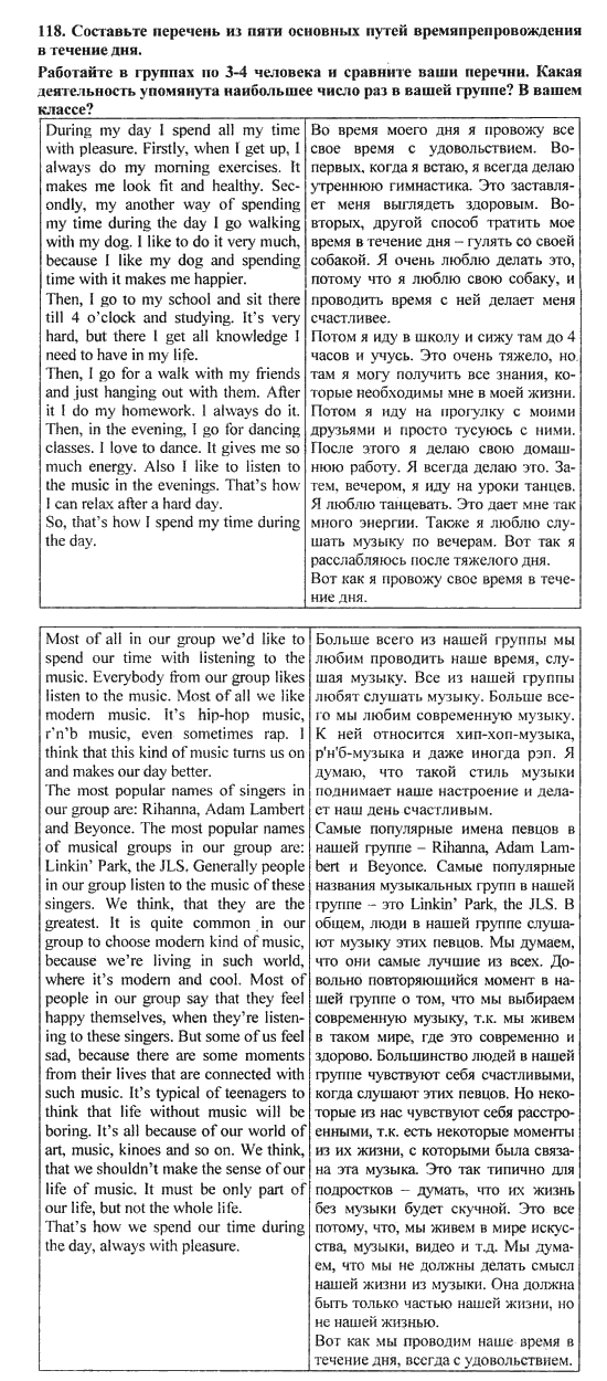 Решения домашних заданий по английскому языку 10 класс Биболетова М. З. 118 упражнение Student's Book