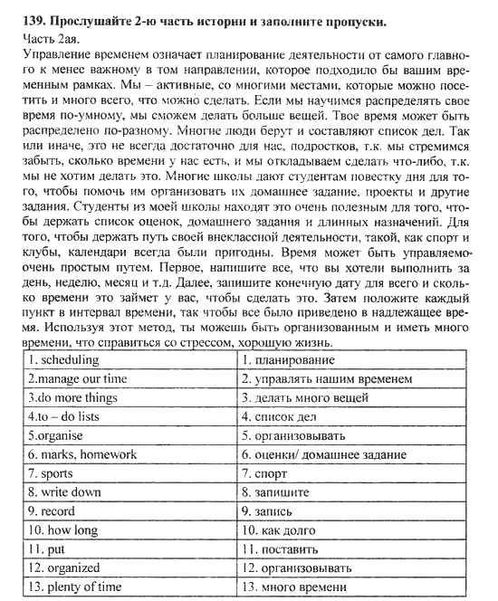Решения домашних заданий по английскому языку 10 класс Биболетова М. З. 139 упражнение Student's Book