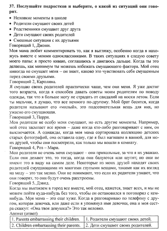 Решения домашних заданий по английскому языку 10 класс Биболетова М. З. 37 упражнение Student's Book