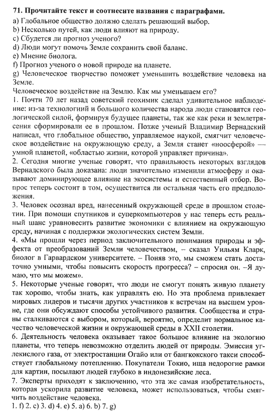 Решения домашних заданий по английскому языку 10 класс Биболетова М. З. 71 упражнение Student's Book