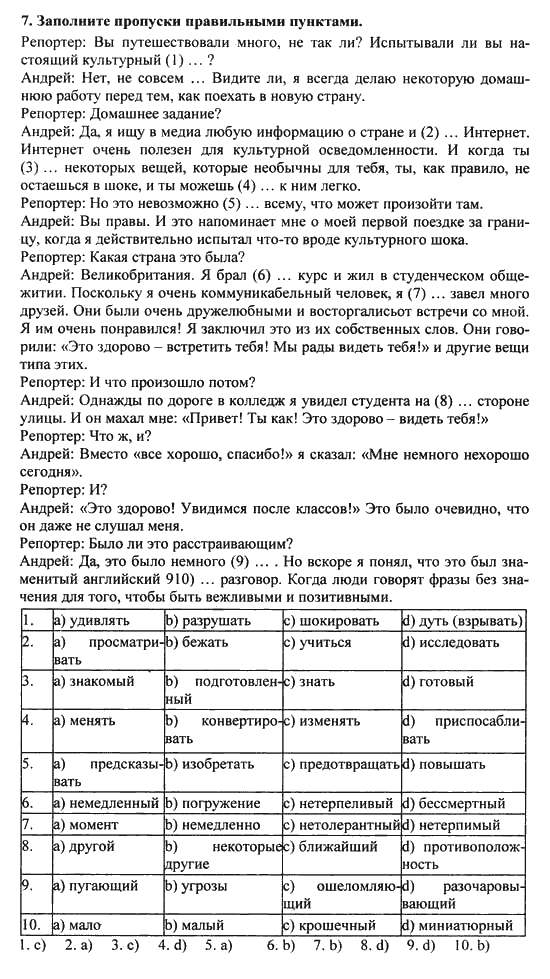 Решения домашних заданий по английскому языку 10 класс Биболетова М. З. 7 упражнение Workbook