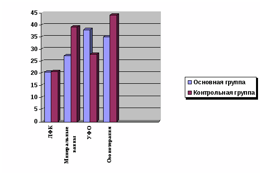 Программа бальнеотерапии основной группы больных, по сравнению с контрольной, включала в себя меньшее количество ванн, поэтому показатели были ниже, чем в контрольной группе.
