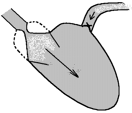4. Висока еластичність судин легень робить їх дуже чутливими до фактора гравітації (сили земного тяжіння). Цей фактор однаково впливає на артеріальні та венозні судини. В результаті цього при вертикальній позі людини має місце нерівномірний кровотік через різні сенменти легені: найбільший він в базальних сегментах (нижніх), найменший – у верхівках, низький кровотік пов’язаний також з низьким тиском в легеневому стовбурі.