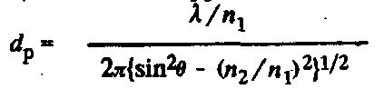 Глубина проникновения - это только один из четырех факторов, которые определяют ослабление интенсивности света, вызванное поглощением пленки при внутреннем отражении. Другими факторами являются; зависящая от поляризации интенсивность электрического поля на поверхности отражения; облучаемая площадь поверхности, возрастающая с увеличением в; соотношение показателей преломления двух сред, от которого зависит сила оптического взаимодействия. Соответствующий параметр, учитывающий все эти факторы, называют эффективной толщиной слоя d>e>. Этот параметр соответствует толщине слоя, который обладает таким же поглощением при прохождении через него света.