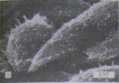 1. При спостереженні в скануючому електронному мікроскопі виявлені два способи виходу хламідій з інфікованих кліток шляхом активного викиду, мабуть, при локальному розриві клітини-хазяїна і шляхом спокійнішого "виверження" з розриву в плазмалемі.