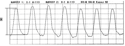 Рис. 1 – Фотоплетизмографічний сигнал в контрольній точці (Н – рівень кровонаповнення).