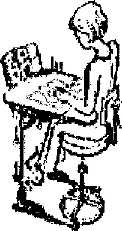 Высоту стула необходимо отрегулировать так, чтобы сиденье находилось на уровне коленных суставов. Задняя сторона бедра должна лишь слегка давить на край стула. Если же давление будет слишком сильным, сидеть вскоре станет неудобно, кроме того, затруднится циркуляция крови в нижней части ног. Для ее уменьшения удобно использовать скамеечку для ног, к тому же ноги получат удобную опору. Для школьников рекомендуем парты специальной конструкции (рис.6) Вспомните: раньше было принято работать за пюпитром (конторкой) - это намного здоровее, чем сидеть, сгорбившись за столом