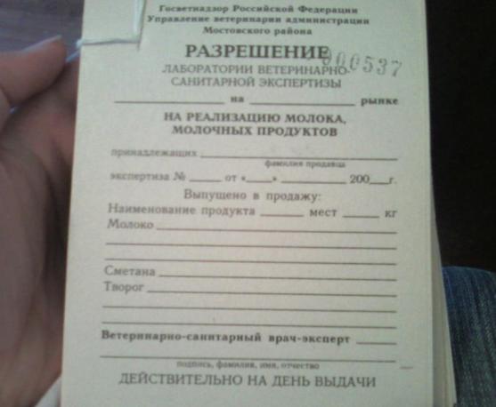 Рис.26. Разрешение на право реализации молока и молочных продуктов на территории рынка.