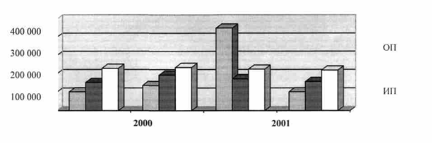 Об'єм фармацевтичного ринку України в 2001 році становив 571,8 млн. доларів США (виробництво - 298,4, імпорт - 321, експорт - 47, 6 млн. доларів США). В 2002 році знову просліджу ється здатність функціонування фармацевтичного ринку (рис. 1.1). Причому ріст обсягу ринку в грошовому вимірі відбувся за рахунок продукції вітчизняних виробників: +4,88% (-0,04%, відповідно, темп приросту обсягів продажу закордонних компаній). [ 43 ]
