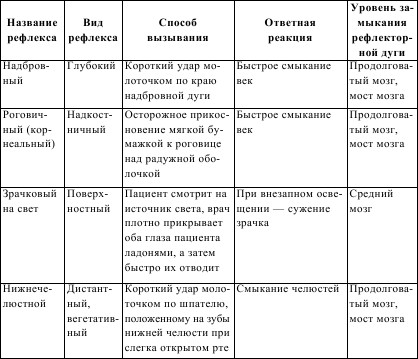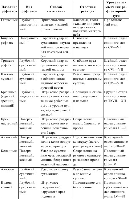Таблица 1 Нормальные рефлексы, исследуемые в неврологии