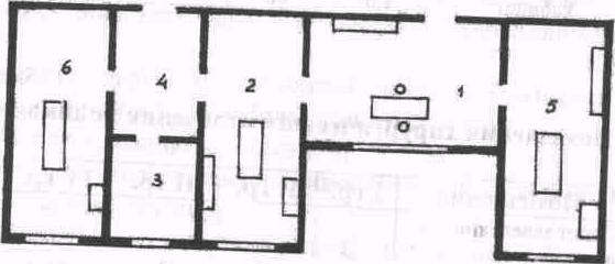 В небольшой районной поликлинике хирургическое отделение должно состоять из кабинета врача и перевязочной, расположенных рядом. При большом объеме работы кроме кабинета врача и перевязочной необходимо иметь помещение (рис.1) для проведения асептических операций (операции при воспалительном процессе могут выполняться в перевязочной).