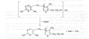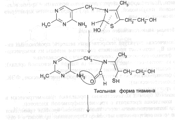 Образовавшийся тиамина гидроксид изомеризуется в псевдооснование тиамина: