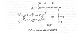 Кроме рибофлавина, в медицинской практике применяют его коферментную форму - рибофлавина мононуклеотид: 7,8-диметил-10-(1-О-рибитил)-изоаллоксазин-5'-фосфат натрия, или рибофлан – 5 – монофосфат натрия: