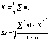 Вибіркове середнє X і вибіркове середнє квадратичне (або стандартне) відхилення Sx, є точковими оцінками відповідних параметрів М і а генеральної сукупності, і обчислюються за такими формулами: