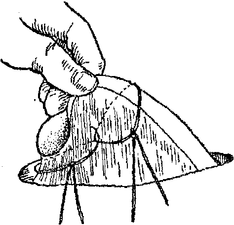 После вскрытия брюшной полости вводят палец в полость и в дорсальной части брюшной стенки отыскивают рога матки, а на их конце находят спрятанные в бурсе яичники( Фото 5). Яичник выводят из полости наружу в рану( Фото6;7), где на связку, брыжейку и сосуды накладывают лигатуру с помощью иглы Дешана( Фото 8). Одной ниткой лигатуры перевязывают яичник спереди, а другой сзади(рис.1). После чего яичник срезают ножницами, а культю обрабатывают настойкой йода.