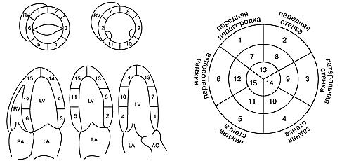 2. Полуколичественный способ анализа, когда по пятибалльной шкале в 16 левожелудочковых сегментах рассчитывается индекс нарушений регионарной сократимости (ИНРС, или WMSI - wall motion score index).