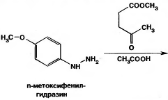 Синтез индометацина осуществляют конденсацией n-метоксифенил-гидразина с метилатом 3-ацетилпропионовой кислоты. Образовавшийся эфир индолилуксусной кислоты и гидролизуют и ацетилируют n-хлорбензоилхлоридом (схема 3):