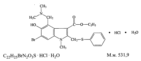 Этилового эфира 6-бром-5гидрокси-1-метил-4-(диметиламинометил)-2-(фенилтиометил)индол-3-карбоновой кислоты гидрохлорид, моногидрат.