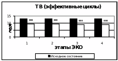 Рис 4. Тромбиновое время в эффективных и неэффективных циклах.
