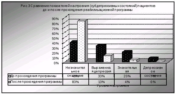 Исчезновение депрессивных состояний и уменьшение количественных показателей по уровню - "значительное" снижение настроение, так же свидетельствуют об эффективности психологической работы.