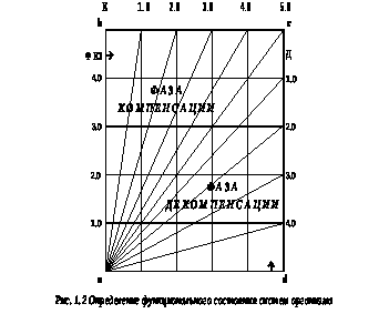 Показатели компенсации и декомпенсации различны. Для систем дыхания и кровообращения показателями компенсации могут быть число дыханий, число сердечных сокращений, минутный объем крови, а декомпенсации - содержание кислорода крови, поглощение O>2> крови. Сказанное представлено на рис.1.2.
