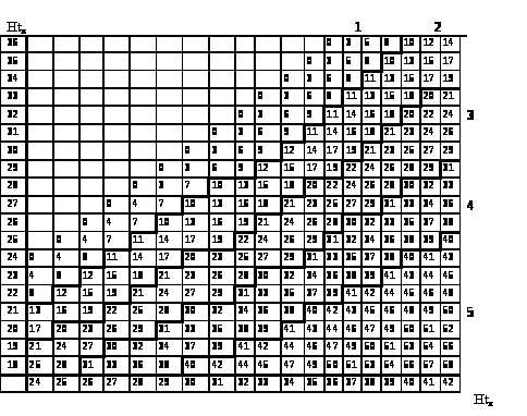 На стороне ad квадрата abcd - нагрузка, например, механическая в ваттах ("шкала нагрузок"), на стороне ab - степени функциональной недостаточности в фазе компенсации от 0 до 5 степени ("шкала функциональной недостаточности в фазе компенсации"). На стороне bc показатели компенсаторных реакций (например, число сердечных сокращений, число дыханий, минутные объёмы дыхания и кровообращения и др.). На стороне cd - степени декомпенсации (например, по содержанию кислорода крови). Функциональный класс здоровья определяется по начинающемся снижению кислорода крови на диагонали ac, которая делит квадрат на фазы компенсации и декомпенсации. В норме, при функциональной недостаточности 0 - 1ст., нагрузка соответствует степени компенсаторной реакции: нагрузка первой степени компенсаторная реакция первой степени и т.д.