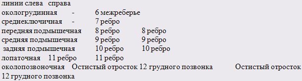 -нижняя граница легких: