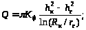 где hк, hc –соответственно глубина фильтрационного потока на контуре питания и глубина жидкости в скважине;
