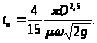 При температуре 70С коэффициент кинематической вязкости воды будет равен 1,4210-6 м2/с. По формуле Н.Н.Павловского: