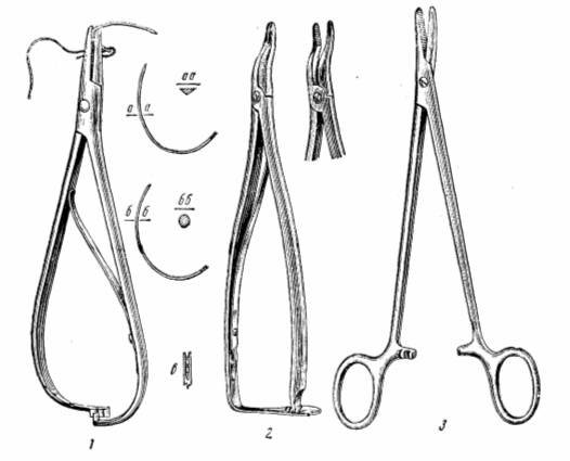 1 – ножницы изогнутые по оси (Рихтера); 2 – ножницы прямые остроконечные;