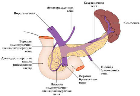 Кровоснабжение поджелудочной железы осуществляется из трёх истоков: 1) a. gastro duodenalis, которая исходит из a. hepatica, 2) a. pancreatoduodenalis inferior, 3) a. lienali s, снабжающей кровью преимущественно тело и хвост поджелудочной железы. (см. рис)