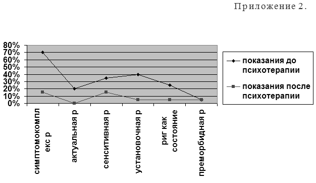 Т.е. Наблюдалось повышение стрессоустойчивости во всех психологических спектрах, купирование процесса астенизации и выход на оптимальное функционирование организма больных после курса психотерапии. Стабилизация таких психологических характеристик как тревожность, депрессивность, ипохондричность, уменьшение соматовегетативных проявлений, улучшение ночного сна, что явилось прогностически благоприятным фактором в излечении больных сердечно-сосудистыми заболеваниями.