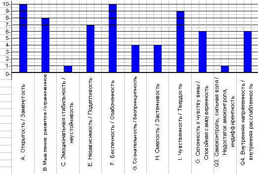 По результатам опросника Кетелла можно сказать, что во второй группе сильно проявляется внутренняя напряженность, стремление к независимости и склонность к чувству вины, развитое мышление, замкнутость, возбудимость, озабоченность, эмоциональная лабильность, застенчивость.