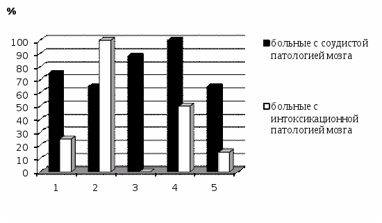 Таблица 1. Патопсихологические особенности больных с сосудистой и с интоксикационной патологией головного мозга. |