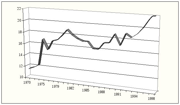 Історія ХХ століття характеризується вражаючим ростом середнього доходу, однак очевидно також, що цей прогрес був нерівномірним. Збільшився розрив між багатими і бідними країнами, так само як і між імущими і незаможними верствами населення в межах країн. Для найбагатшої чверті світового населення ВВП на душу населення зріс протягом сторіччя приблизно в шість разів, а у випадку найбіднішої чверті цей ріст склав менш трьох разів (рис.1.2.).