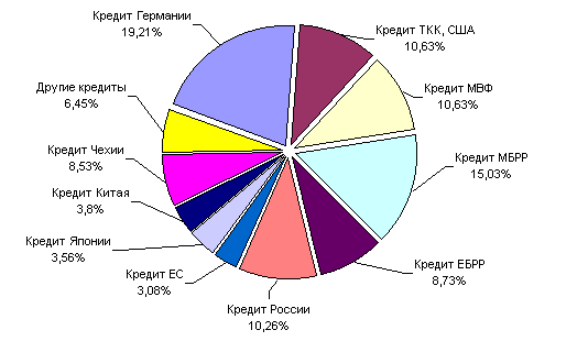 | Привлечение иностранных кредитов (по состоянию на 01.03.1999 г., вмлн долл.США) | ||||||||