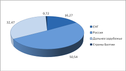 Монопольным поставщиком российского газа является Группа компаний ОАО «Газпром». В 2008 г. «Газпром» продал за границей 280,9 млрд. куб. м газа. В том числе: продажа в страны Европы в 184,4 млрд. куб. м газа и страны СНГ и Балтии 96,5 млрд. куб. м газа. Объем поставок российским потребителям в 2008 г. составил 287,0 млрд. куб. м. Таким образом, объемы зарубежных продаж составляют почти половину товарного газа «Газпрома». О структуре реализации газа можно судить по данным рисунка 1.
