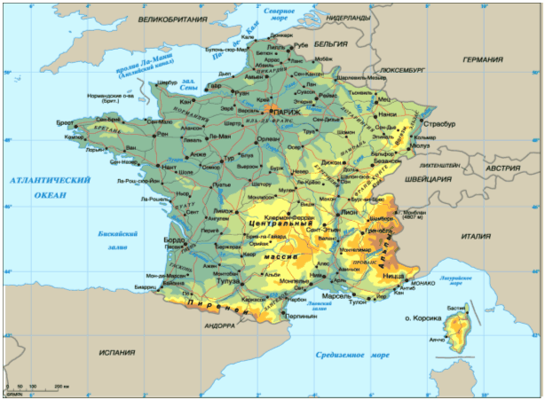 Рис.1.1. Докладна географічна й політична карта Франції та прикордонних країн Європи