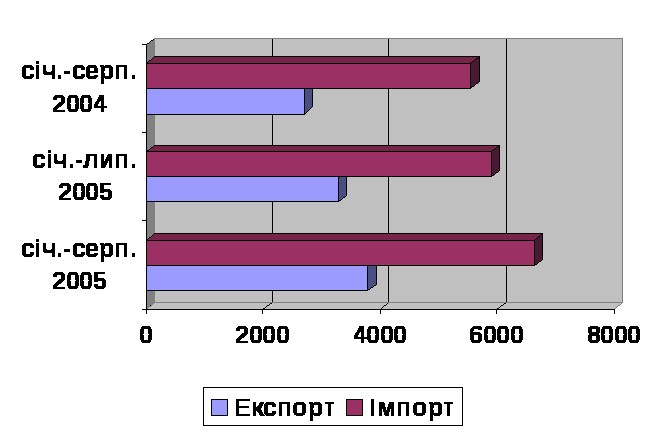Найбільші обсяги українського експорту в січні - серпні 2005 року, повідомляє Reuters, були спожиті Росією - 23,8% від загального обсягу експорту, Туреччиною - 6,1%, США - 5,5%.