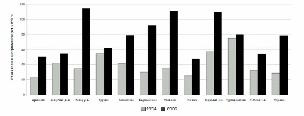 За время рыночных реформ, концентрация товарного экспорта государств-участников СНГ, за исключением Молдовы и Узбекистана, заметно возросла. Особенно высокий уровень имеют Азербайджан, Казахстан, Таджикистан, Туркменистан.