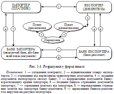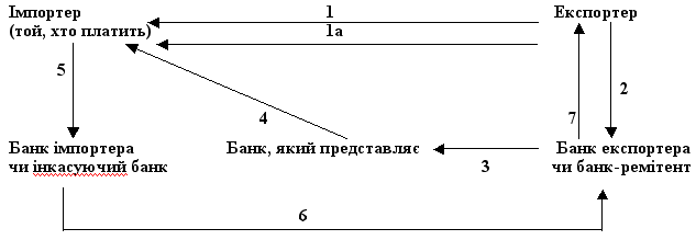 Банк виконує функції агента по грошових розрахунках між експортером та імпортером. Він надає імпортеру, за вказівкою експортера чи його банку, документи про відвантаження товару чи надання послуг та інкасує проти цих документів належну суму чи отримує акцептований вексель.