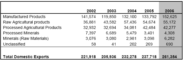 Экспорт основных производимых продуктов в период 2002-2006 гг.