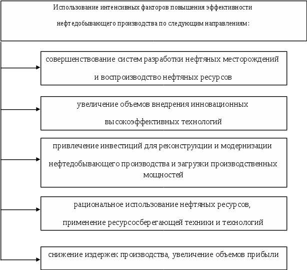 Особое значение имеют интенсивные факторы повышения эффективности нефтедобывающего производства. Использование таких факторов осуществляется по следующим направлениям (рис. 3)