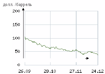 До конца 2008г. продолжается падение цены на нефть и рост курса доллара по отношению к рублю.