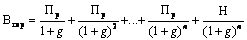 деВн — розрахункова вартість цінних паперів, дохід на які сплачується як різниця між цінами придбання і погашення; Н — номінальна вартість конкретного цінного паперу;g — рівень дохідності по конкретному виду цінних паперів;n — термін, що лишився до погашення.