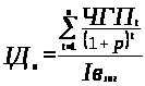 Для розрахунку цього показника на практиці використовують коефіцієнт дисконтування – αt = 1/(1+р)t, тоді ЧПД розраховується за формулою: