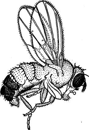 Спектр мутантных признаков, или признаков, затрагиваемых мутациями, оказывается очень широким. Нет признаков и свойств, которые в той или иной степени не затрагивались бы мутациями. Наследственной изменчивости подвержены все морфологические, физиологические, биохимические, этологические признаки и свойства. Эти вариации выражаются как в качественных различиях, так и количественно, т.е. по средним значениям варьирующих признаков. Мутации могут происходить как в сторону увеличения, так и в сторону уменьшения выраженности определенного признака или свойства. Мутации бывают или очень резко выражены (вплоть до летальности), или представлены в виде незначительных отклонений от исходной формы (так называемые «малые» мутации). В качестве примера «большой» мутации на рис.2 изображена дрозофила с мутацией tetraptera; эта мутация привела к возникновению признака, характерного для другого отряда (четыре крыла вместо обычных для мух двух крыльцев). Во многих работах показано, что мутации затрагивают такие существенные биологические признаки, как общая жизнеспособность, способность к скрещиванию, плодовитость и скорость роста и т.п. То обстоятельство, что мутации могут затрагивать все без исключения признаки и свойства организмов, является их важнейшим эволюционным свойством: эти наследственные изменения и являются материалом для эволюции.