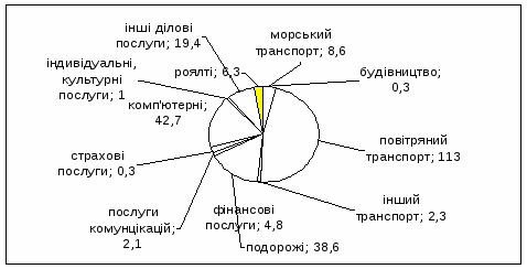 Товарна структура експорту послуг по всі видам послуг, 2005 р, млрд. дол.
