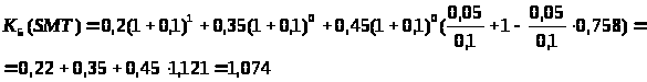 Таким образом, получаем поправочный коэффициент на отличия в условиях платежа для кредитной формы оплаты SMT-250: